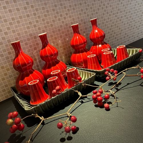 壁面に浮かび上がる赤い表札が目を引く当店。洗練された大人の空間は、普段使いから接待、記念日などの特別な日まで幅広くご利用いただけます。ここでしか味わえない料理の数々をご賞味ください。