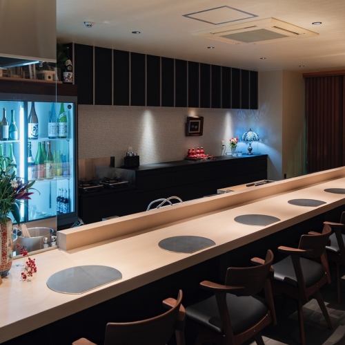 落ち着いた雰囲気が漂うシックな店内には、人数に応じてご案内可能なお席を各種ご用意しております。洗練された空間で振る舞われる大将自慢の料理は、どれもこだわりの逸品ばかりです。